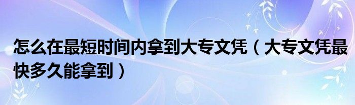 怎么在最短时间内拿到大专文凭(大专文凭最快多久能拿到),跪求万能的知友,帮我看看!