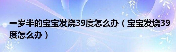 大家好,乐乐来为大家解答以下的问题,关于一岁半的宝宝发烧39度怎么办,宝宝发烧39度怎么办这个很多人还不知道,那么今天让乐乐带着大家一起来看看吧!