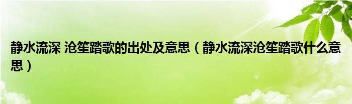 大家好,乐乐来为大家解答以下的问题,关于静水流深 沧笙踏歌的出处及意思,静水流深沧笙踏歌什么意思这个很多人还不知道,那么今天让乐乐带着大家一起来看看吧!