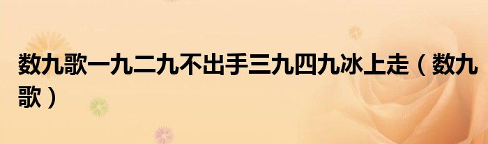 大家好,乐乐来为大家解答以下的问题,关于数九歌一九二九不出手三九四九冰上走,数九歌这个很多人还不知道,那么今天让乐乐带着大家一起来看看吧!