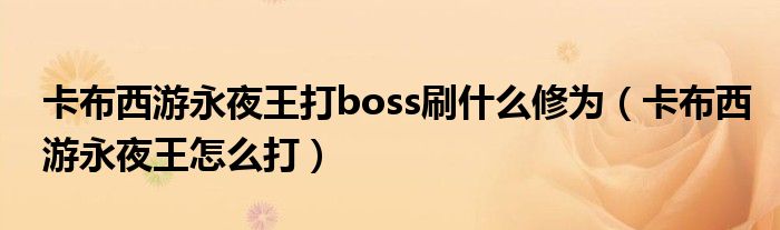 大家好,乐乐来为大家解答以下的问题,关于卡布西游永夜王打boss刷什么修为,卡布西游永夜王怎么打这个很多人还不知道,那么今天让乐乐带着大家一起来看看吧!