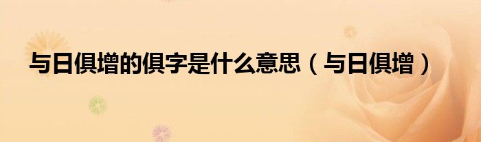 大家好,乐乐来为大家解答以下的问题,关于与日俱增的俱字是什么意思,与日俱增这个很多人还不知道,那么今天让乐乐带着大家一起来看看吧!