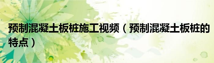 大家好,乐乐来为大家解答以下的问题,关于预制混凝土板桩施工视频,预制混凝土板桩的特点这个很多人还不知道,那么今天让乐乐带着大家一起来看看吧!