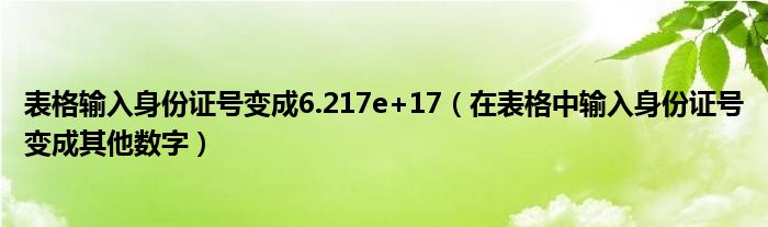 大家好,乐乐来为大家解答以下的问题,关于表格输入身份证号变成6.217e+17,在表格中输入身份证号变成其他数字这个很多人还不知道,那么今天让乐乐带着大家一起来看看吧!