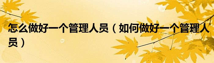 大家好,乐乐来为大家解答以下的问题,关于怎么做好一个管理人员,如何做好一个管理人员这个很多人还不知道,那么今天让乐乐带着大家一起来看看吧!
