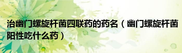 大家好,乐乐来为大家解答以下的问题,关于治幽门螺旋杆菌四联药的药名,幽门螺旋杆菌阳性吃什么药这个很多人还不知道,那么今天让乐乐带着大家一起来看看吧!